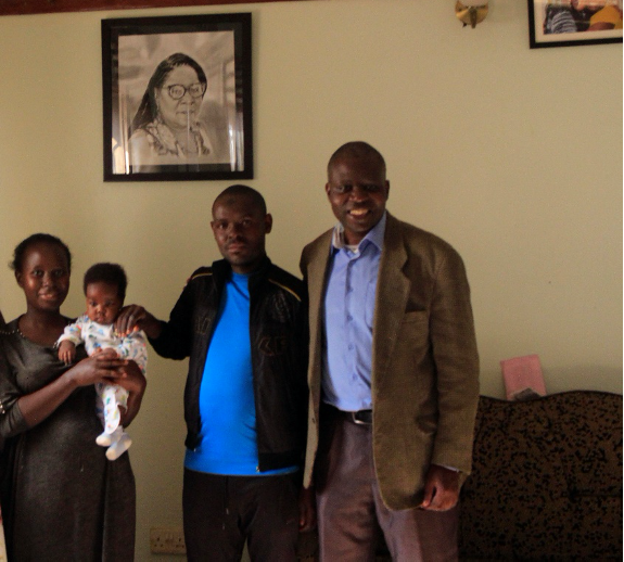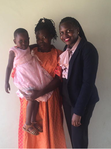 L-R Ritah, Her Baby and Husband, and Francis Ssuubi founder Wells of Hope Ministries. Ritah was the first beneficiary of the Access to Justice Project in July 2020